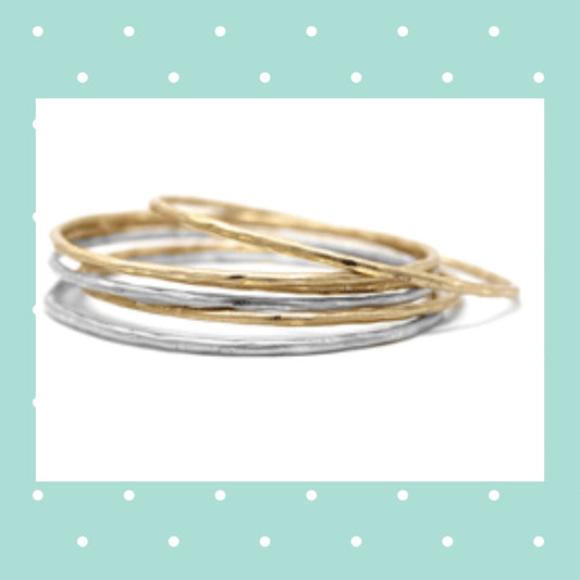 Set of 6 Line Hammered Bangle Bracelets - Gold/Cream
