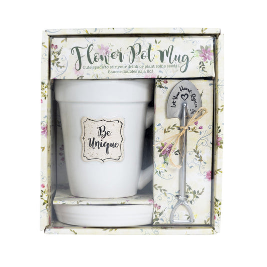 White Flower Pot Mug - “Be Unique” Gift Set