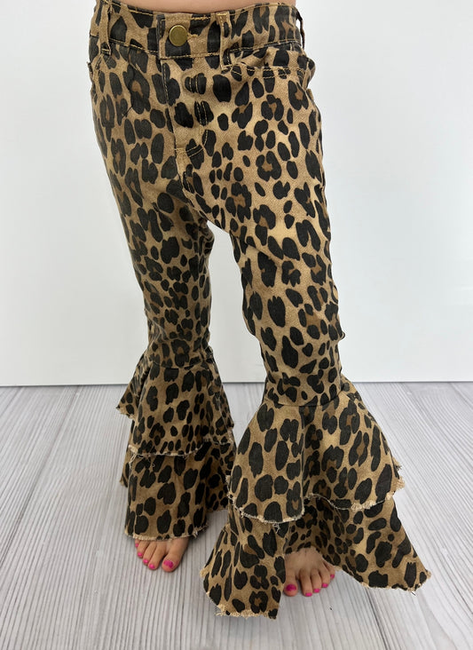 Clothing for Toddler Girl - Cheetah Denim Flares