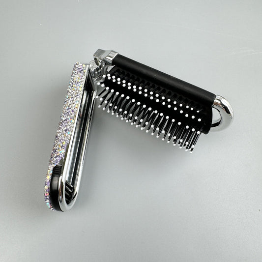 Bling Bling Handmade Silver AB Rhinestone Foldable Travel Hair Brush and Mirror