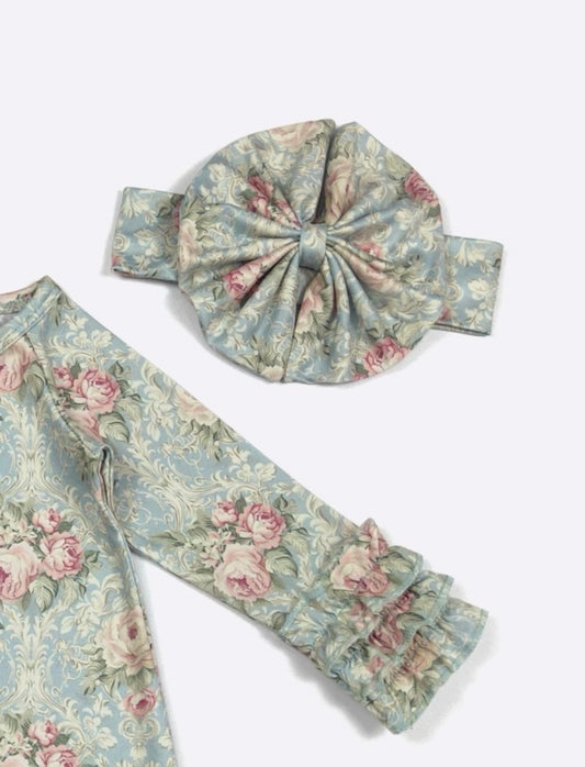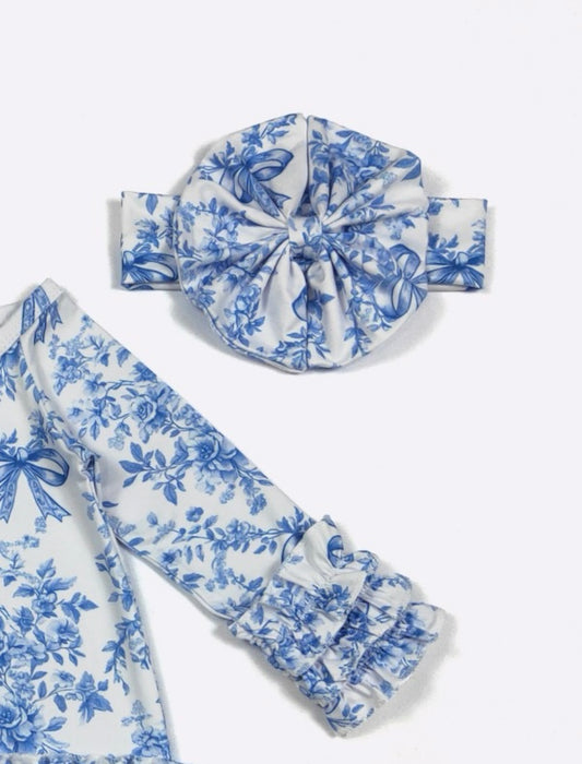 Clothing for Baby Girl - Blue Chinoiserie Gown fits Newborn to 3 Months
