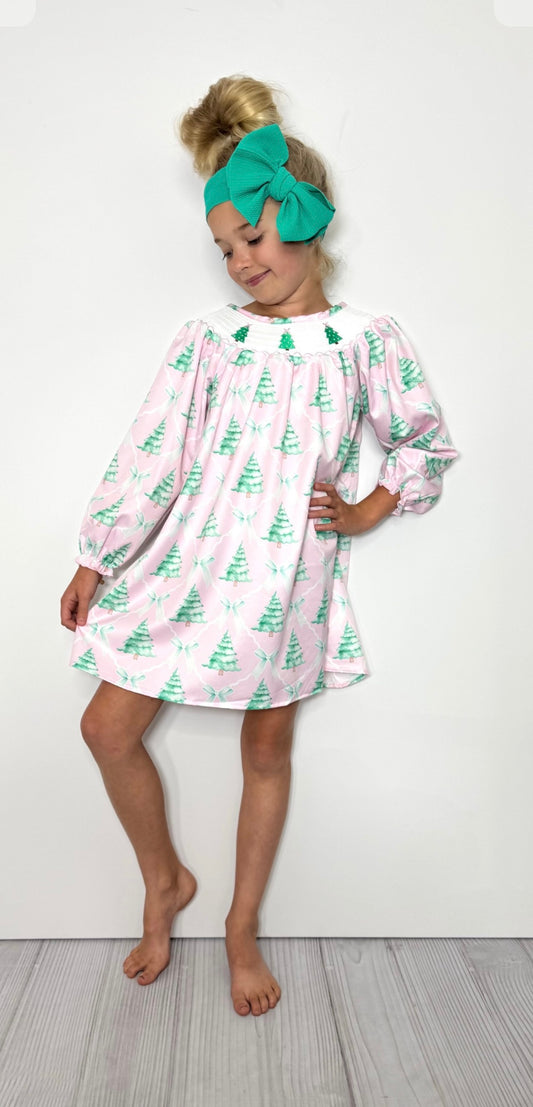 Clothing for Toddler Girl - Pink Tree Trellis Smocked Girls Dress