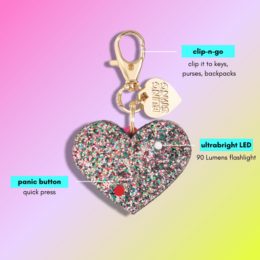 BlingSting Safety Alarm | Confetti Glitter Heart - Available in 3 colors