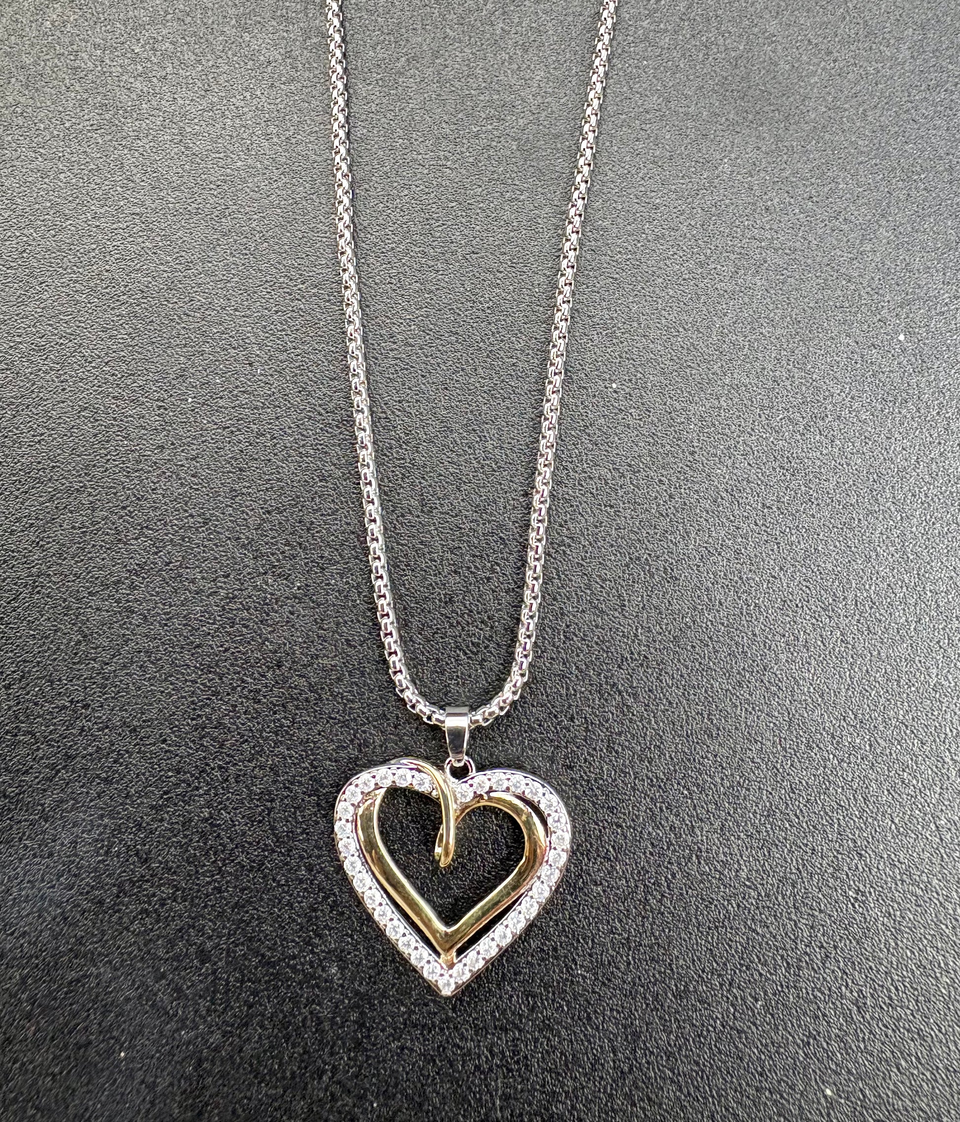 14 KG Plated Cubic Zirconia Heart Knot Necklace