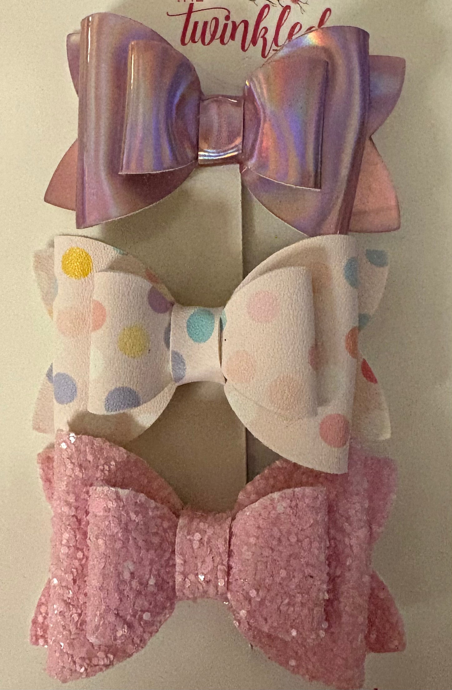 3 Pack Bow Set - Shiny, Dot, Pink Sparkle
