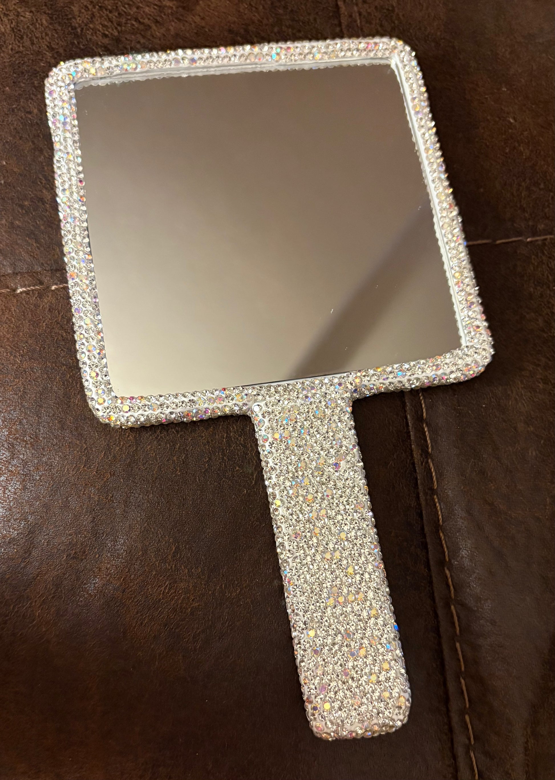 Bling Bling! Clear AB Crystal Rhinestone Square Handheld Mirror 9” x 5”