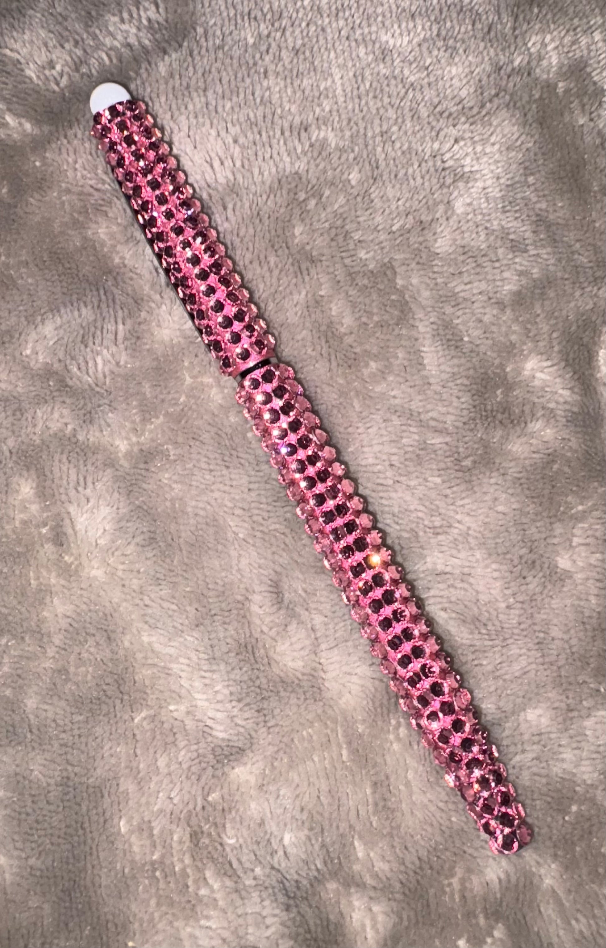 Bling Bling!! Fancy Writing Pen with Stylus Pink Crystal with Silver Trim