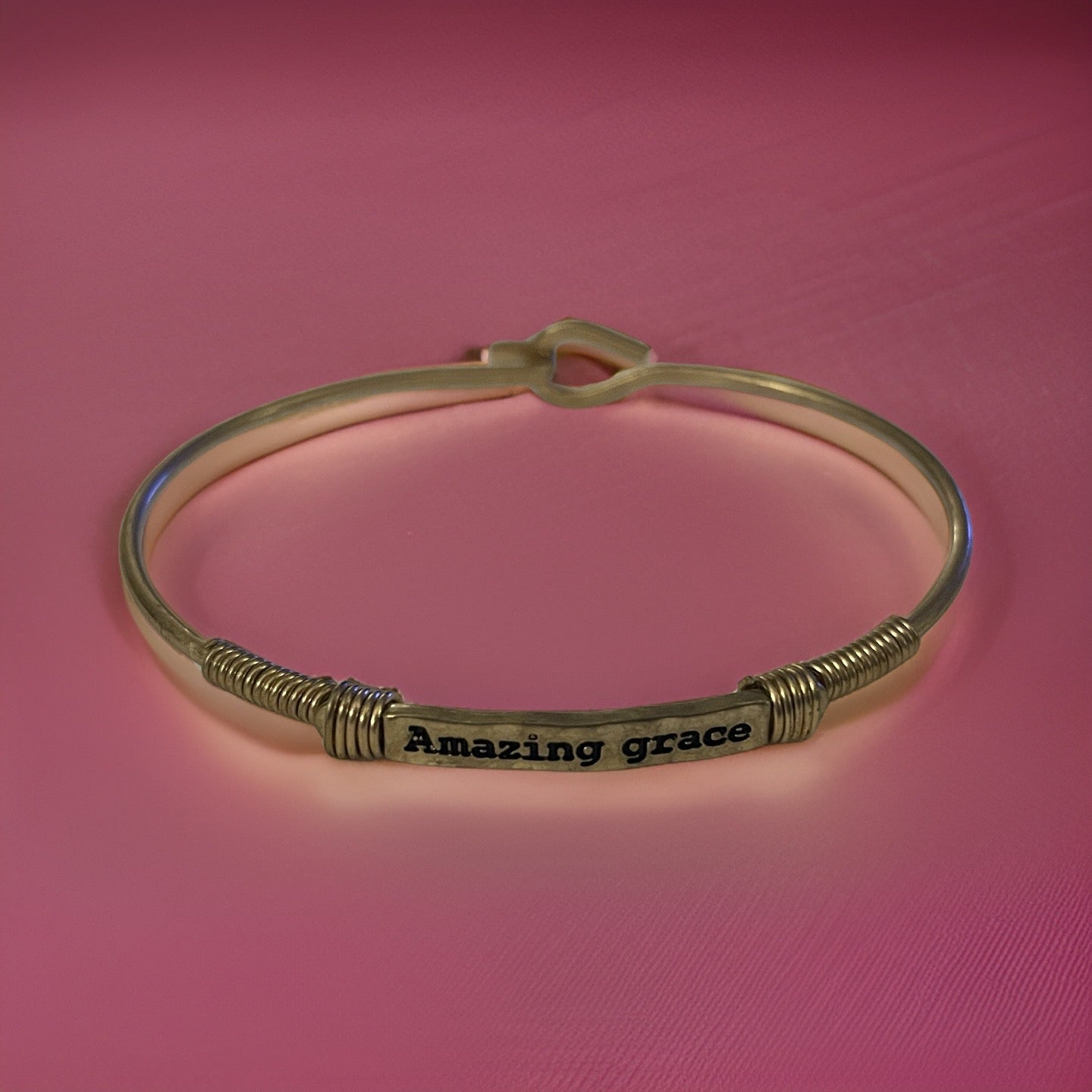 Bracelet with engraved message, "Amazing Grace”. Available in gold and silver.