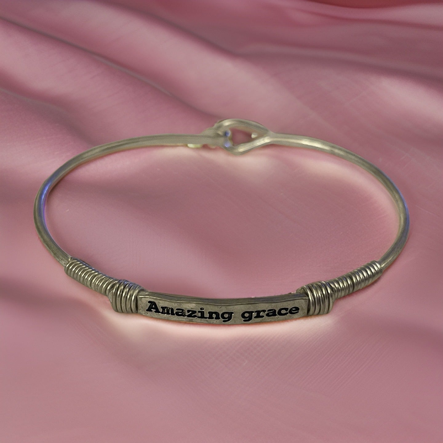 Bracelet with engraved message, "Amazing Grace”. Available in gold and silver
