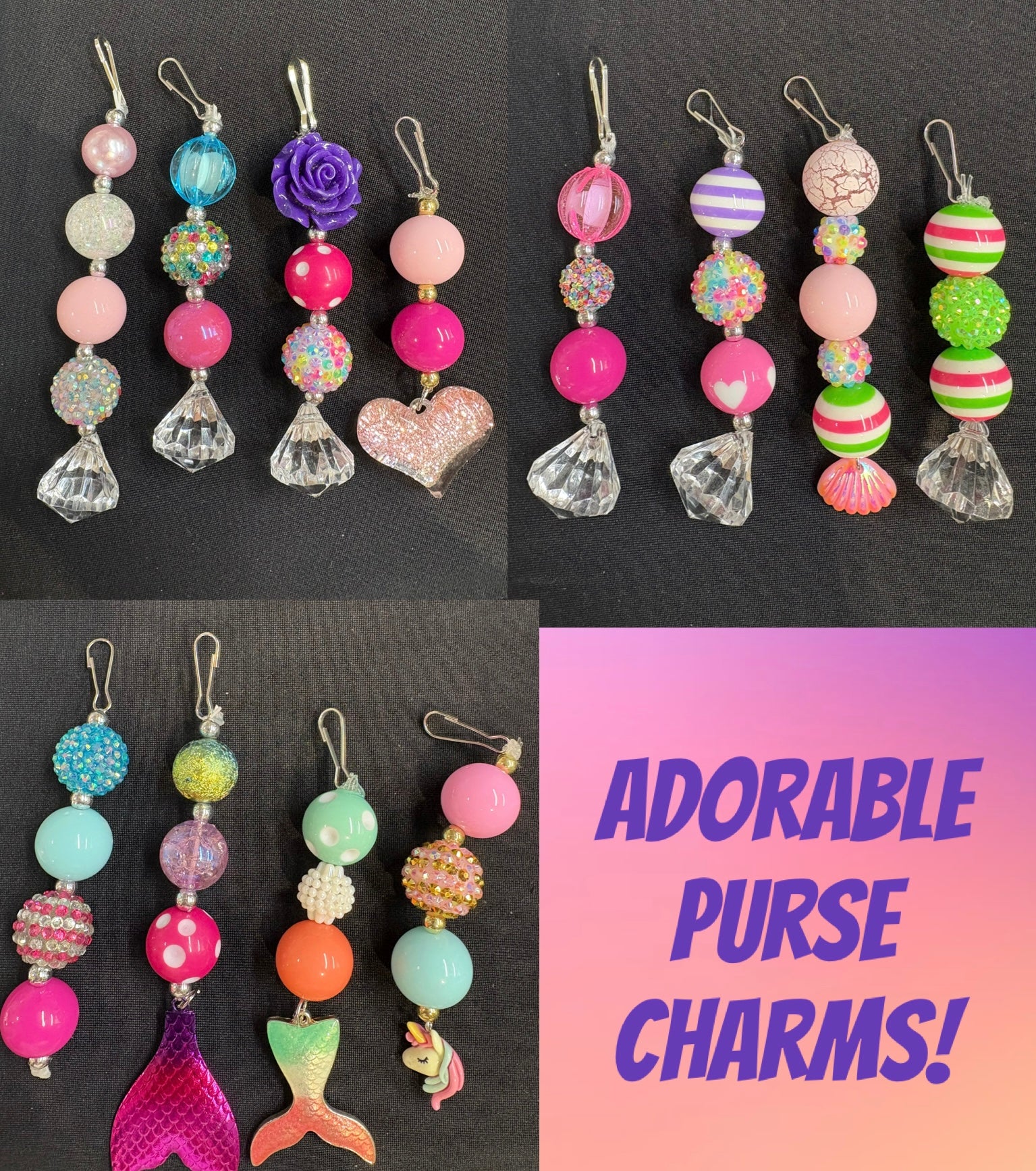 These lovely bubblegum beaded purse charms are colorful and fun.