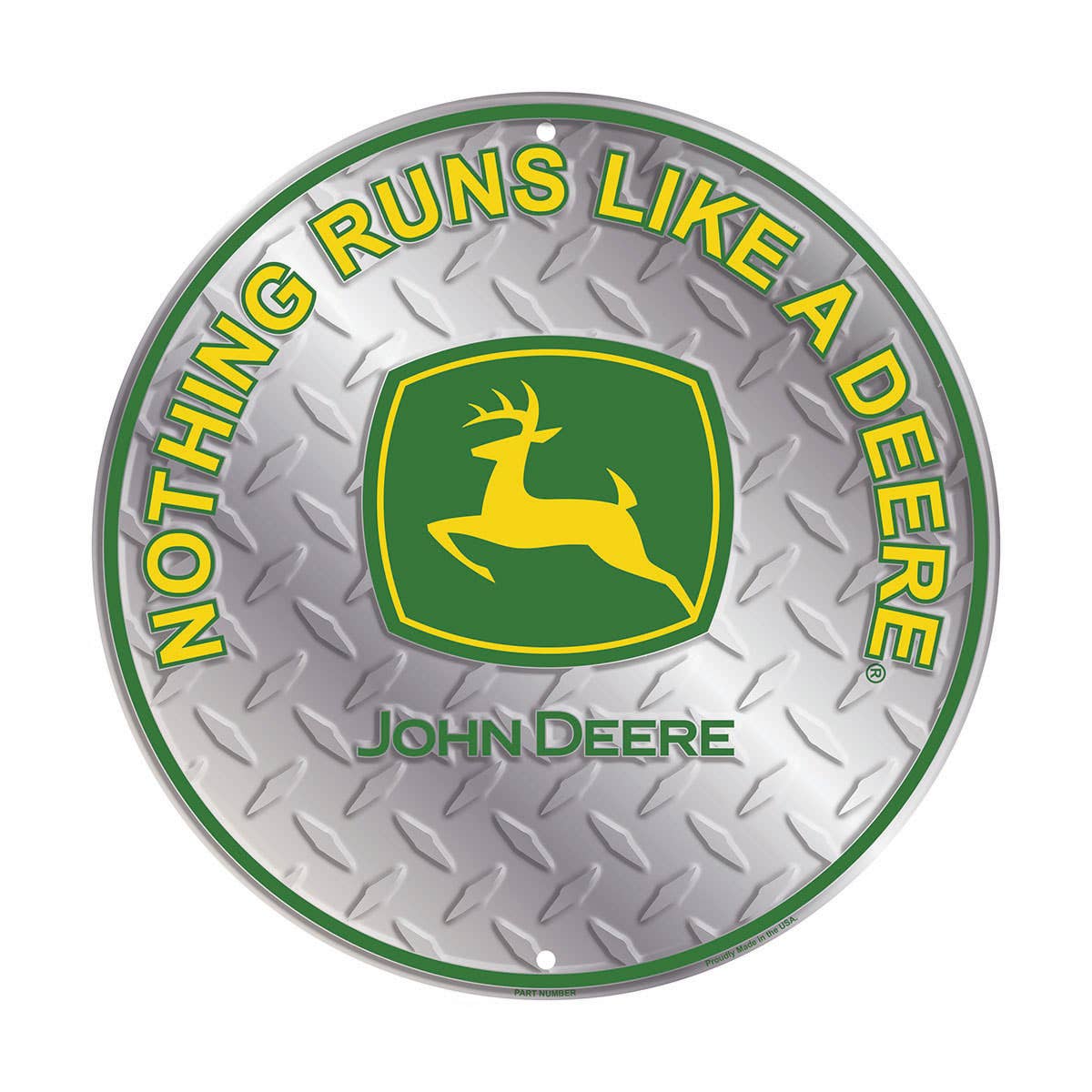 John Deere metal wall sign - Made from recycled aluminum embossed for clean raised look Made in the USA 12" diameter.