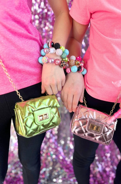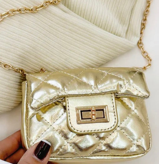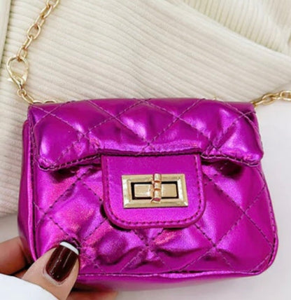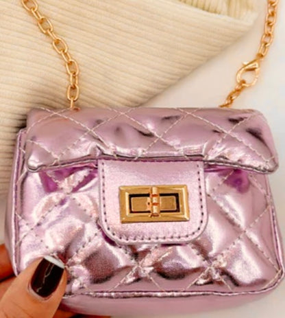 Metallic Cross Body Quilted Kids Purse - Available in multiple colors