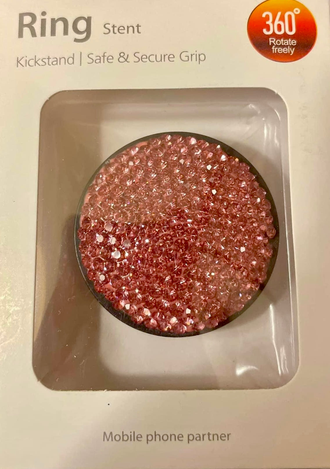 Pink Rhinestone collapsible ring stint (like pop socket)