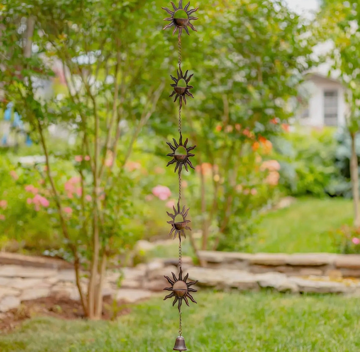 Rain Chain - 76.25 Inch Long Antique Bronze with Bohemian Sun & Moon
