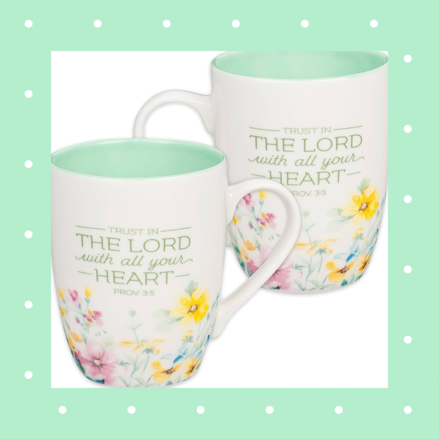 The Trust in the LORD Green Wildflower Ceramic Coffee Mug makes a versatile gift and noteworthy reminder for cherished friends or family members of all ages and stages of life to place their trust in the LORD.
